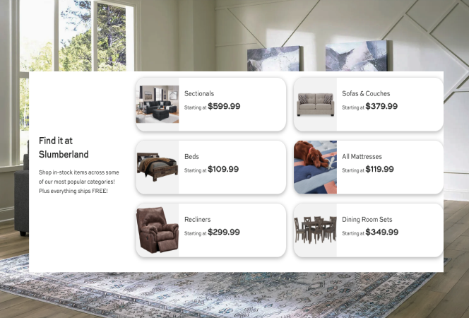 With over 120 stores across 12 states, Slumberland Furniture has been a trusted name in home furnishings for decades. The brand needed a digital platform that could match the expertise and service customers experience in their showrooms while expanding their reach in the competitive online furniture market.
